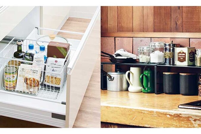 - 仕切りのあるケースを使用する。 調味料を種類別に分けると使いやすい。