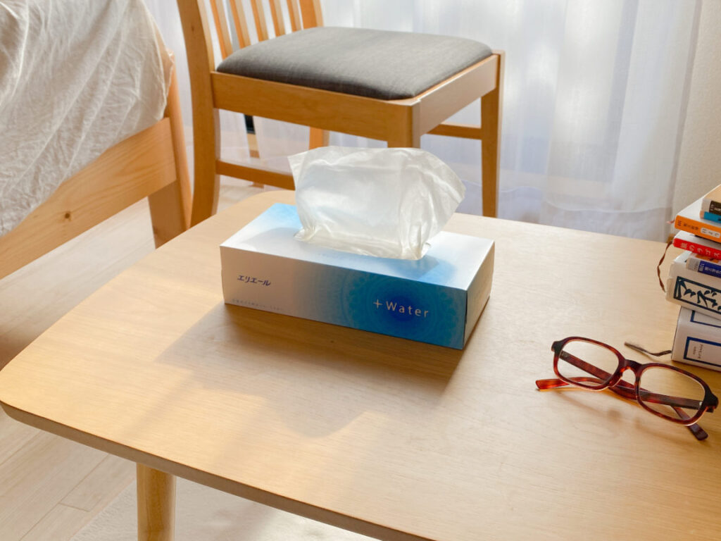 家族が集まるソファの近くにティッシュを配置します。これにより、急な鼻水やくしゃみに迅速に対応できます。