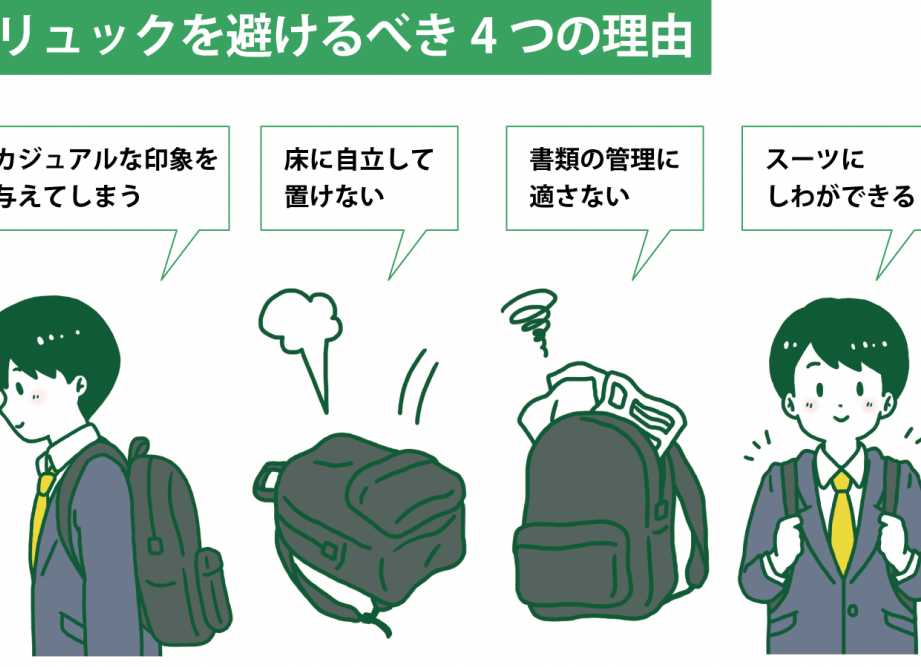 - カバンを選ぶ際は、シンプルで清潔感のあるデザインを選ぶ。