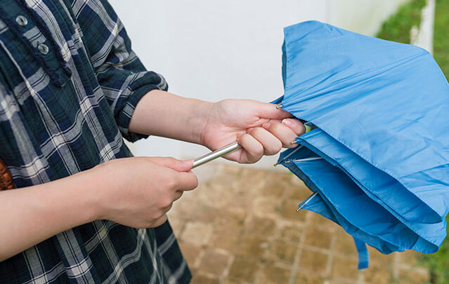 - 定期的に乾かす。特に梅雨の時期などは、濡れた傘を外に出してしっかりと乾かすことを心がけます。