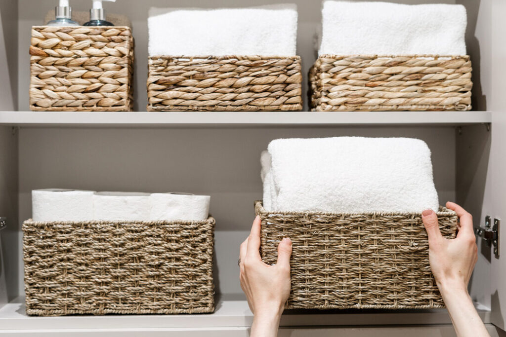 ボディタオル専用の収納ボックスを洗面台の近くに置き、使いやすさを向上させます。