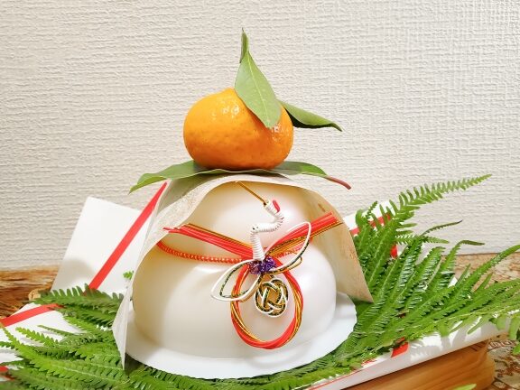 - 橙や飾りを添えること。上に橙を置くことで、より華やかに演出します。