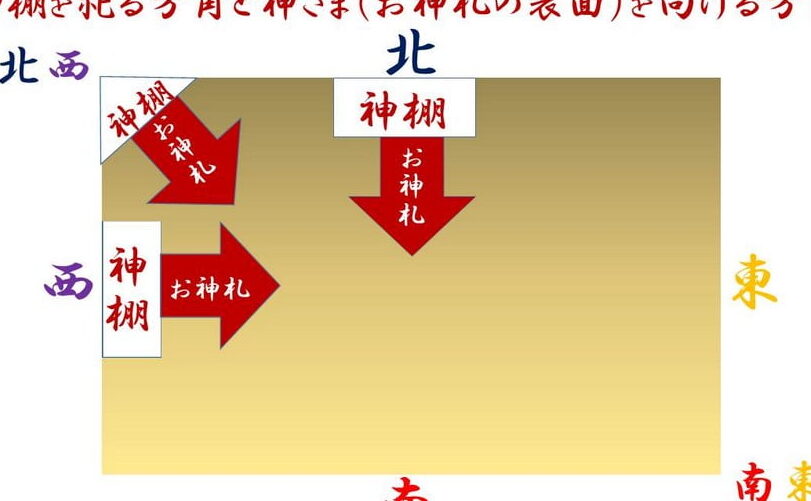 - 背後に壁を設ける。 御札を置く場所は、できるだけ壁に対して垂直に配置します。後ろに支えがあることで、安心感を損なわない効果があります。