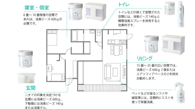 - 使用する場所を選ぶ – 臭いが特に気になる場所を見極める。