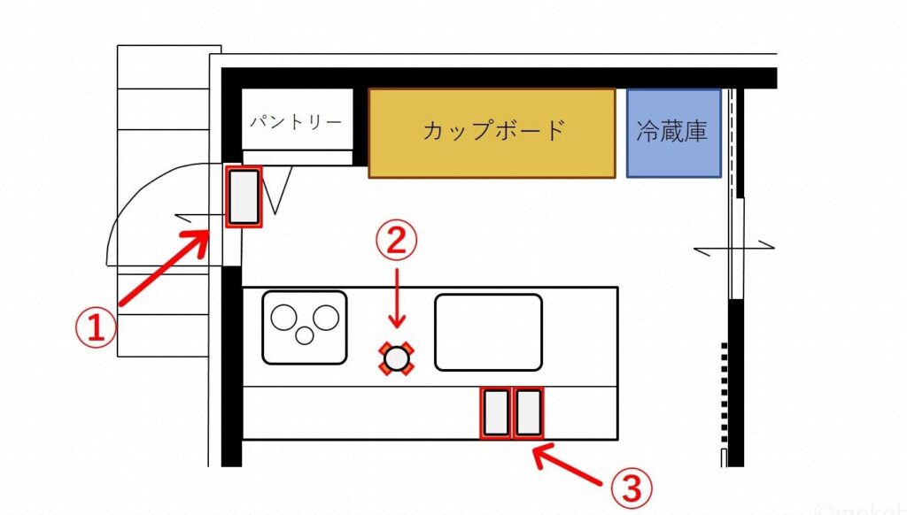 - 調理エリアの近くに設置する。 ゴミをすぐに捨てられるように、食材の準備場所に近い位置が望ましいです。