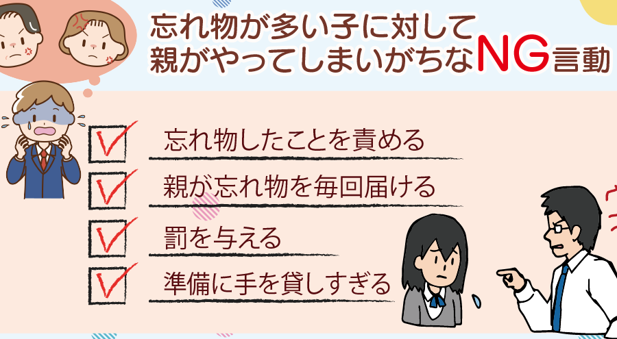- 注意力の欠如:多数の作業や情報に気を取られ、物の配置をきちんと覚えていないことが多いです。
