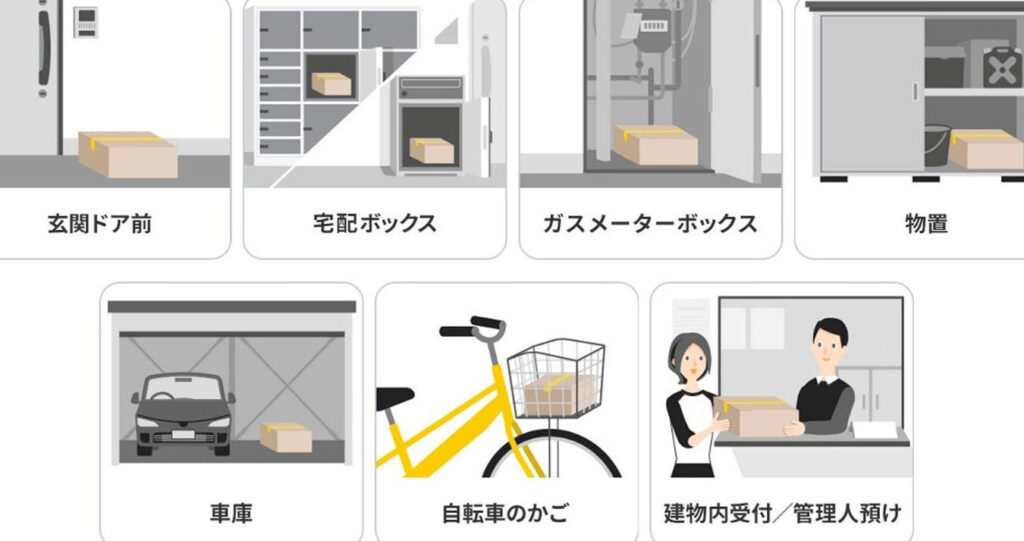 - 荷物の受取場所を指定します。例として、玄関や自宅の裏口などが挙げられます。