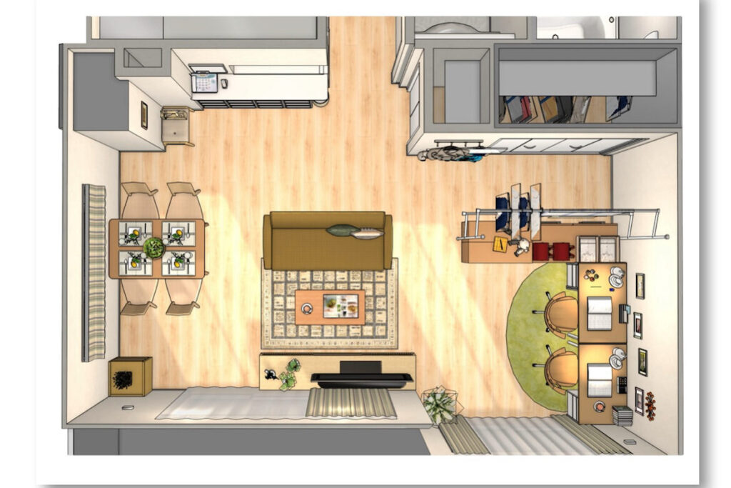 - 動線を意識する: 移動の妨げにならないように、通路や歩行する際の動線を整理します。