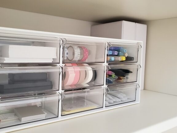 - 収納ボックスを選ぶ。引き出し式・仕切り付き・透明なものがおすすめです。