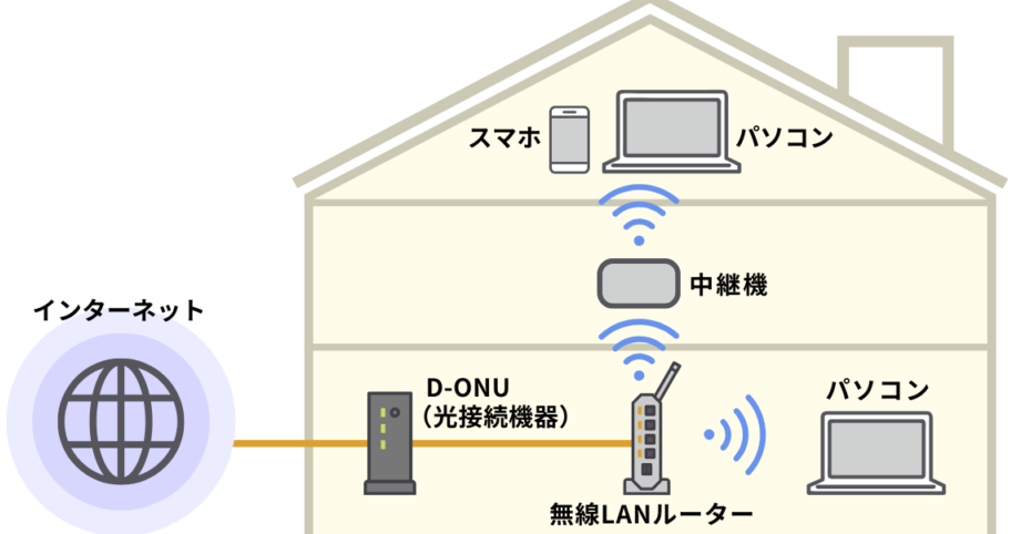 - ルーターと中継器を適切な位置に配置する。信号を受信しやすい場所を選ぶ。
