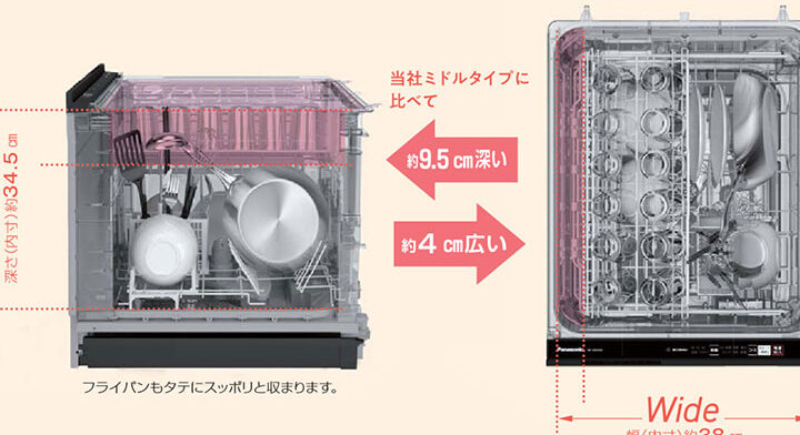 - 洗浄力がビルトインタイプに比べて劣ることがあります。