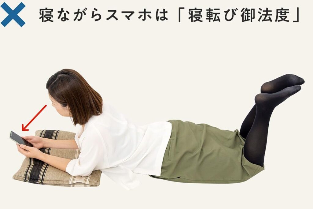 - 就寝前の使用時間を制限する。寝る1時間前はスマホを見ないよう心掛けよう。