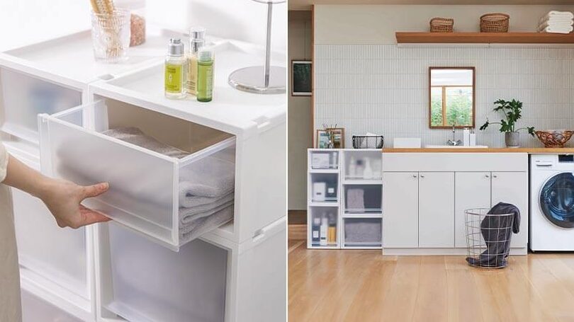- 洗濯機の上や下にスペースを作り、収納場所を確保する。