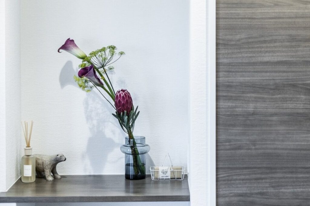 - ドレッサーの上に置く – 日常的なメイクや身支度の際に花の楽しさを感じる。