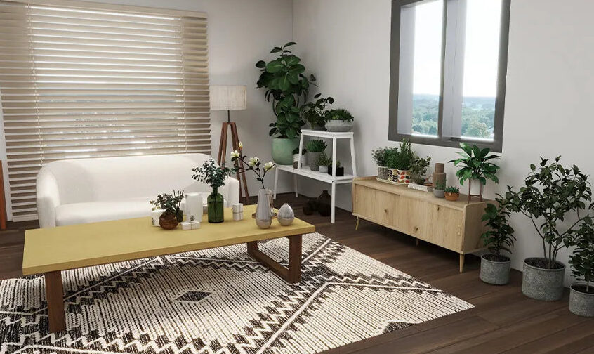 - テーブルや棚の上に小さな植物を配置し、バランスを取ります。