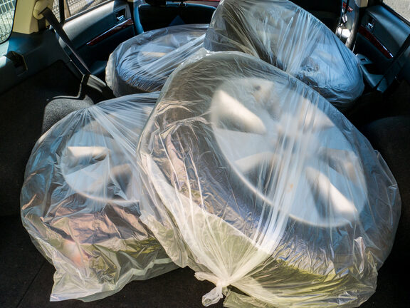 - タイヤをバッグやカバーに入れる。 これにより、車内を汚さず、タイヤを傷から守ります。