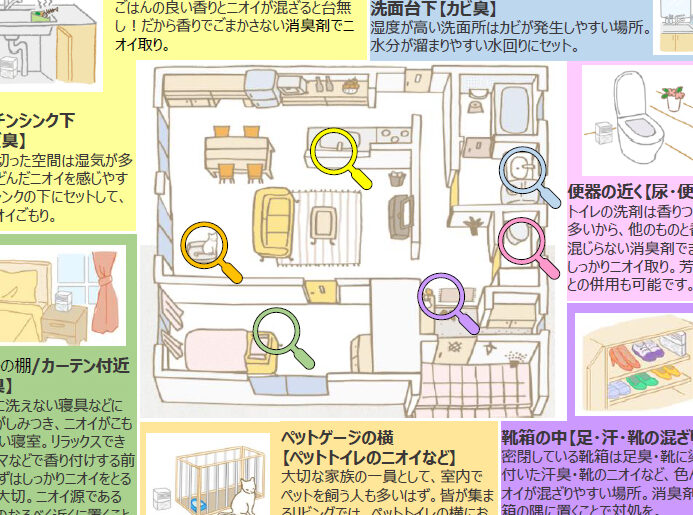 消臭剤を効果的に配置することで、悪臭をしっかりと取り除ける。ここでは、部屋ごとの具体的な配置方法を示す。