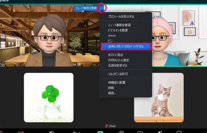 - 会議の内容に適したアイテムを背景に置くことで、意思を伝える。
