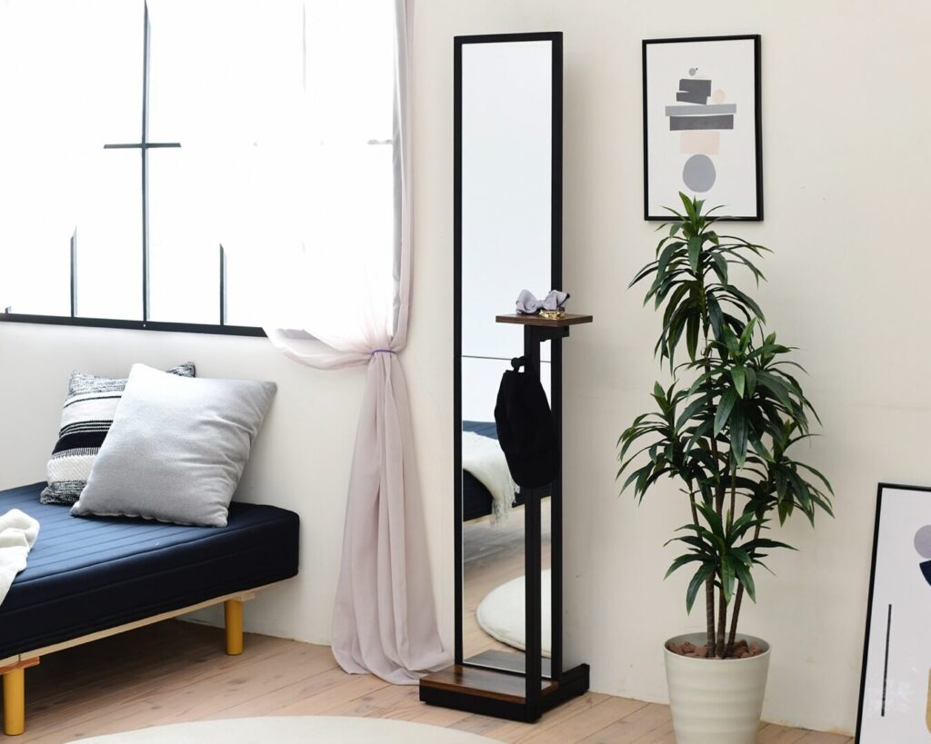 - 動線を整理する役割も果たす。スタンドミラーの配置によって、部屋内の動きやすさが改善され、生活空間がより快適になります。