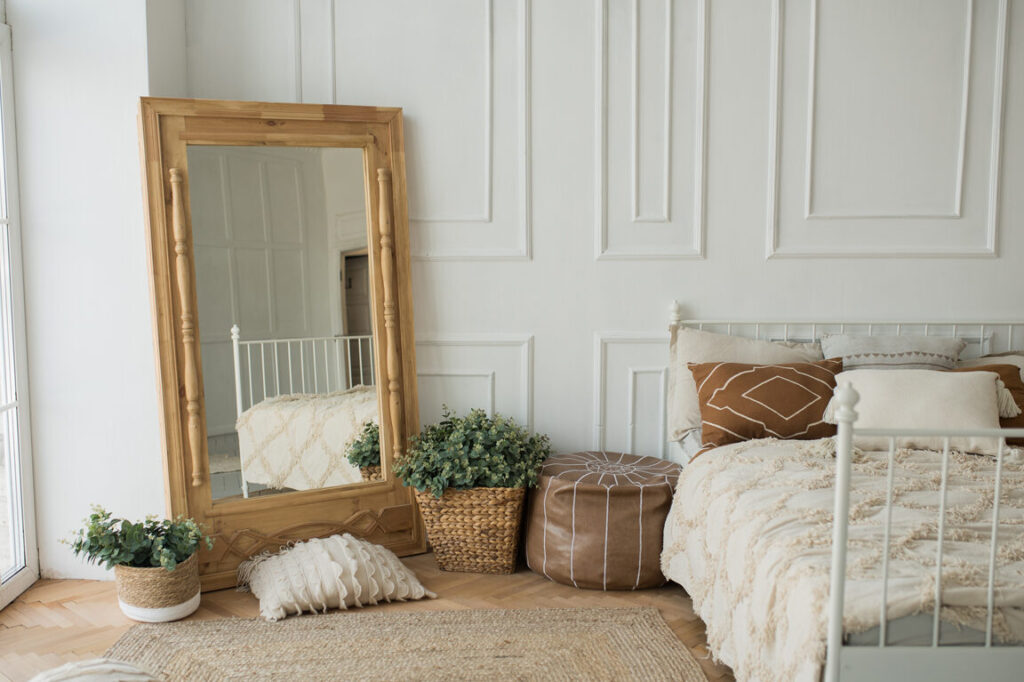 - ベッドの正面に鏡を配置する: そうすることで、部屋全体が広く感じられる。