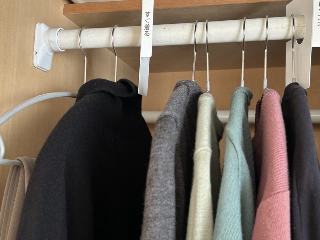 - 使用頻度を考慮する。 よく着る服は手の届きやすい場所に、季節物やあまり着ない服は奥に収納します。