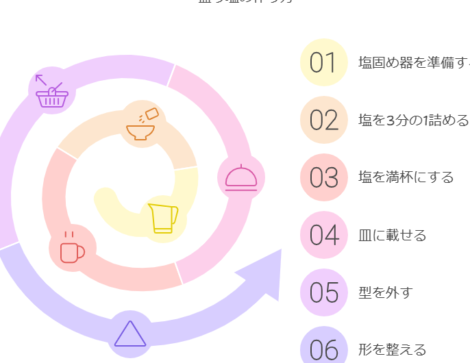- 心を込めて盛る。 塩を手で形作りながら、感謝の気持ちを込めます。