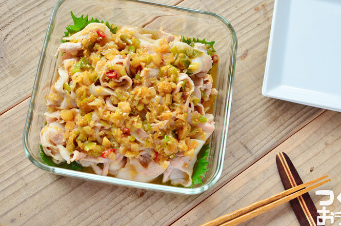 - 保存容器に詰める。 冷却した豚肉を密閉できる容器に入れます。