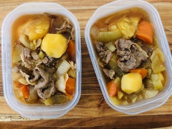 - 肉じゃがを調理する。 作り方は冷蔵保存と同様。