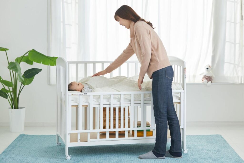 - ベビーベッドを壁から離す。赤ちゃんが転落しないよう、1メートル以上の距離を設けます。