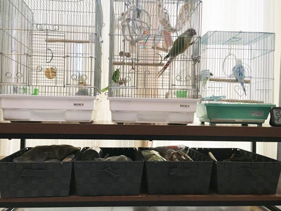 - かごの位置を調整する。 垂直方向に遮蔽物を置くことで、鳥の安心感を高めます。