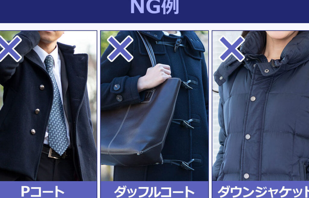 - 面接官が入室する前に脱ぐこと。これでカジュアルな印象を持たれにくい。