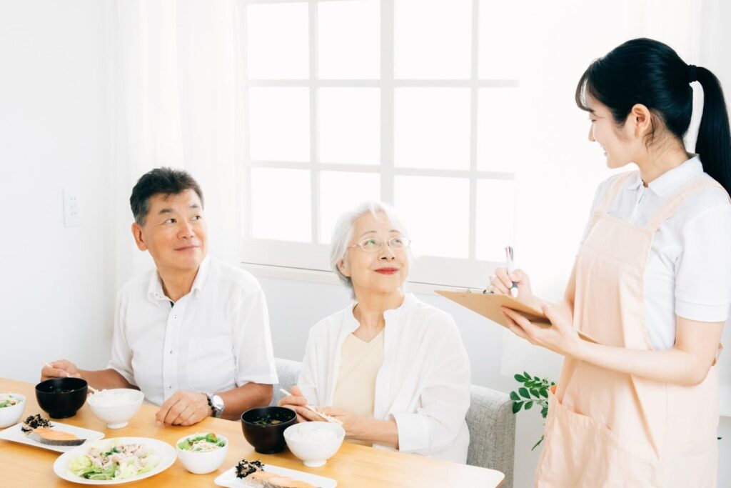 食事中にスタッフがサポートし、必要に応じてフィードバックを行う。