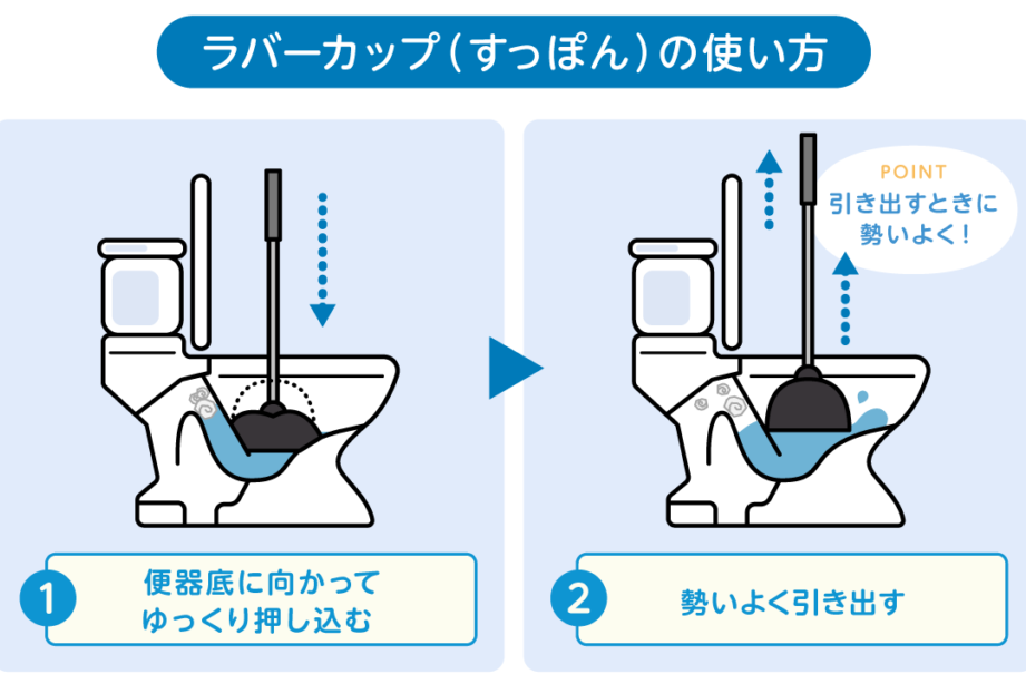 - 上下にしっかりと押し引きします。 力強く何度も繰り返すことで、詰まりを解消できます。