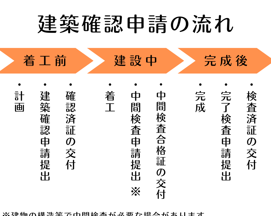 以下は、建築確認のプロセスを簡潔に示した手順です。