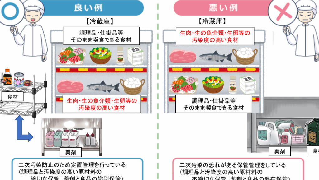 - 定期的に内容を確認する。 不良品や期限が切れた食品を早めに取り除く。
