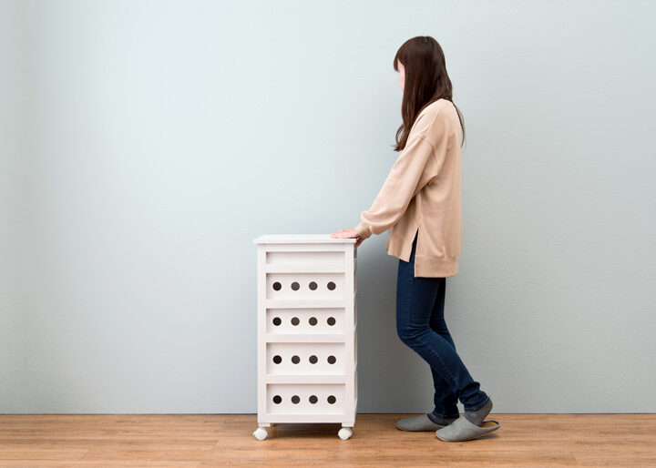 デスクの引き出しにティーバッグを密閉容器で収納し、見えないところにも安心して保管します。