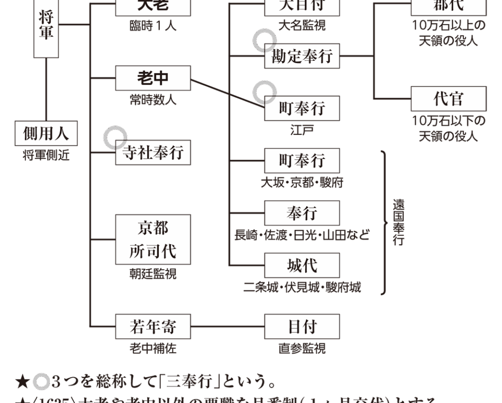 江戸幕府の職制にはいくつかの重要な役職があります。これらの役職は、幕府の運営を円滑に進めるために配置されています。以下は、職制の基本的な構成要素です。