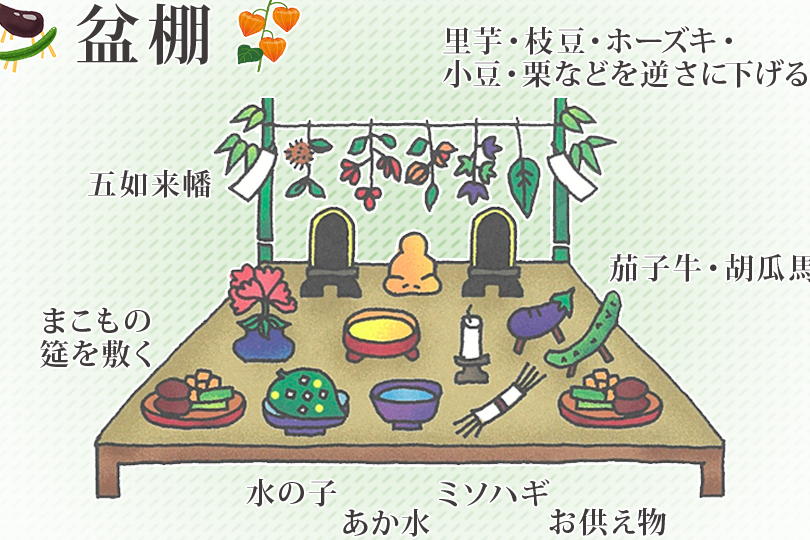 - ろうそく: 煉炭や香を用いて、故人の霊を迎える準備をします。